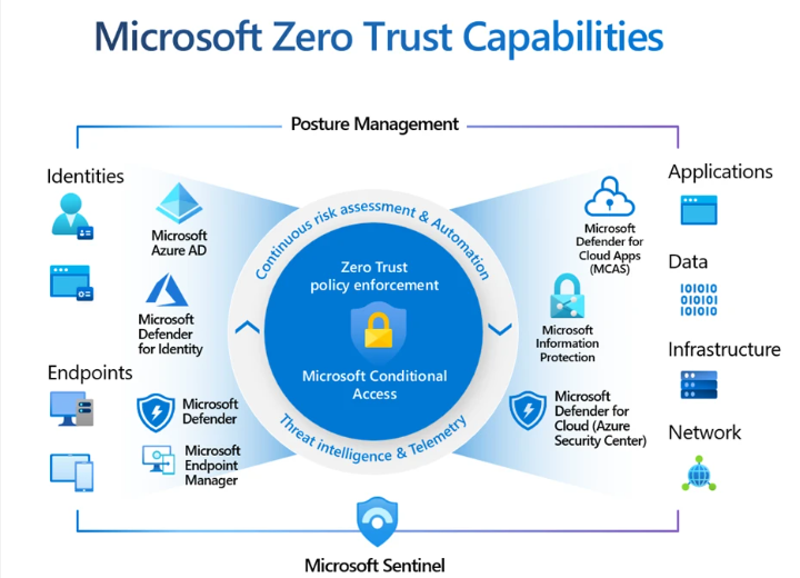 - Dati: La protezione si concentra direttamente sui dati (crittografia, DLP), indipendentemente da dove risiedono, rafforzando l’efficacia della strategia zero trust.